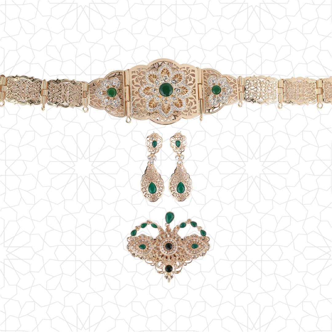 طقم حزام 1 قطعة حزام و1 زوج أقراط، مجوهرات الزفاف، سلسلة خصر مغربية وحزام خصر معدني للنساء، للنساء.