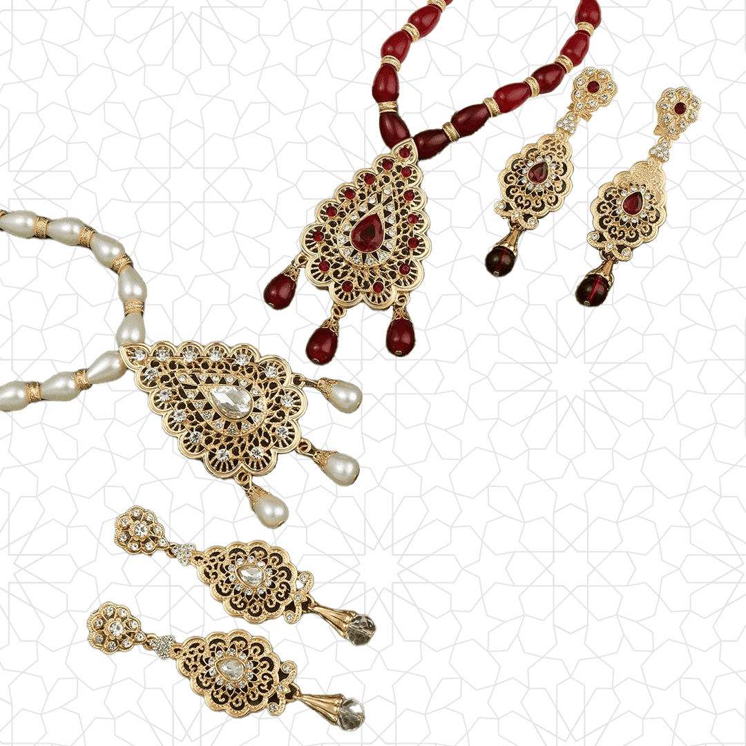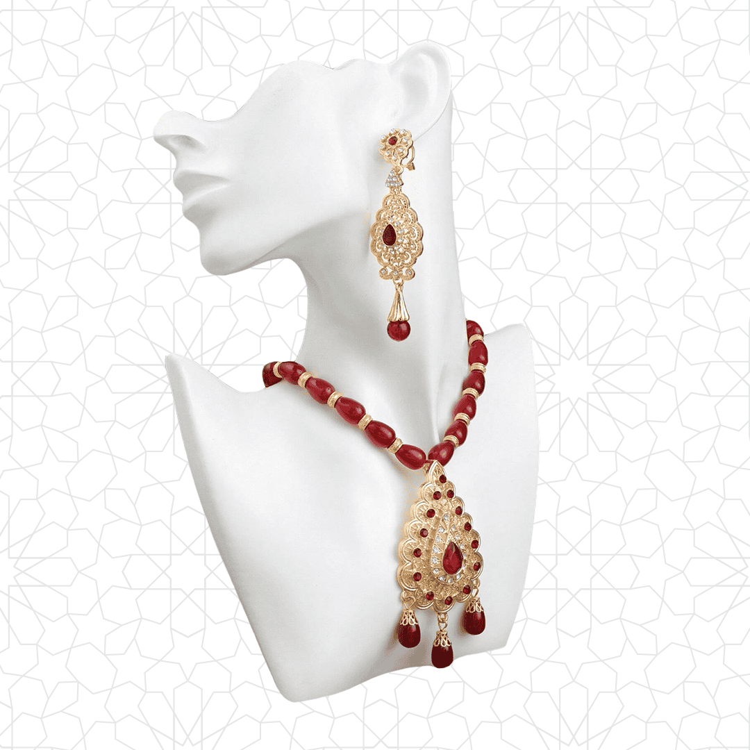 1Set Vintage Luxurious Handmade Beaded Pendant Necklace & Earrings Set For Women’s Festival Wedding Party Bridal Jewelry .